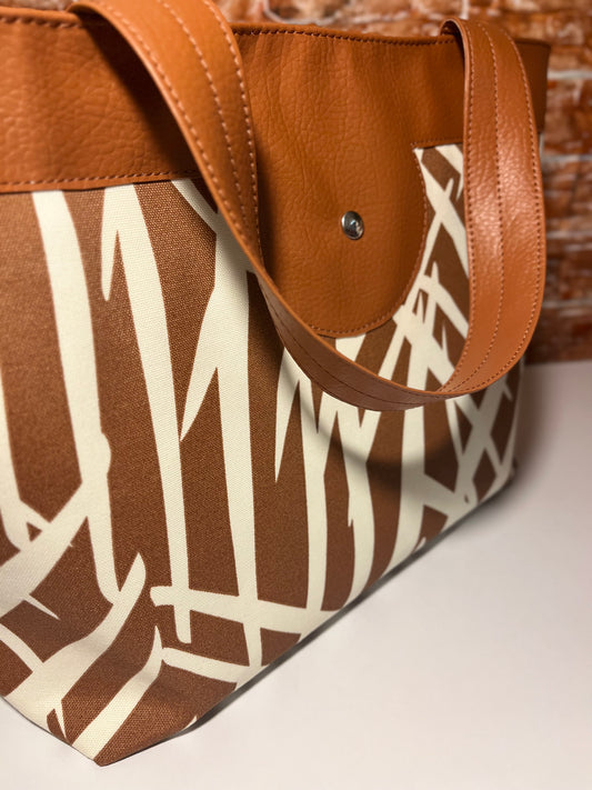 (RTS) Canvas Handbag - Tropical Palm Print / COLORS: (Brown or Orange)