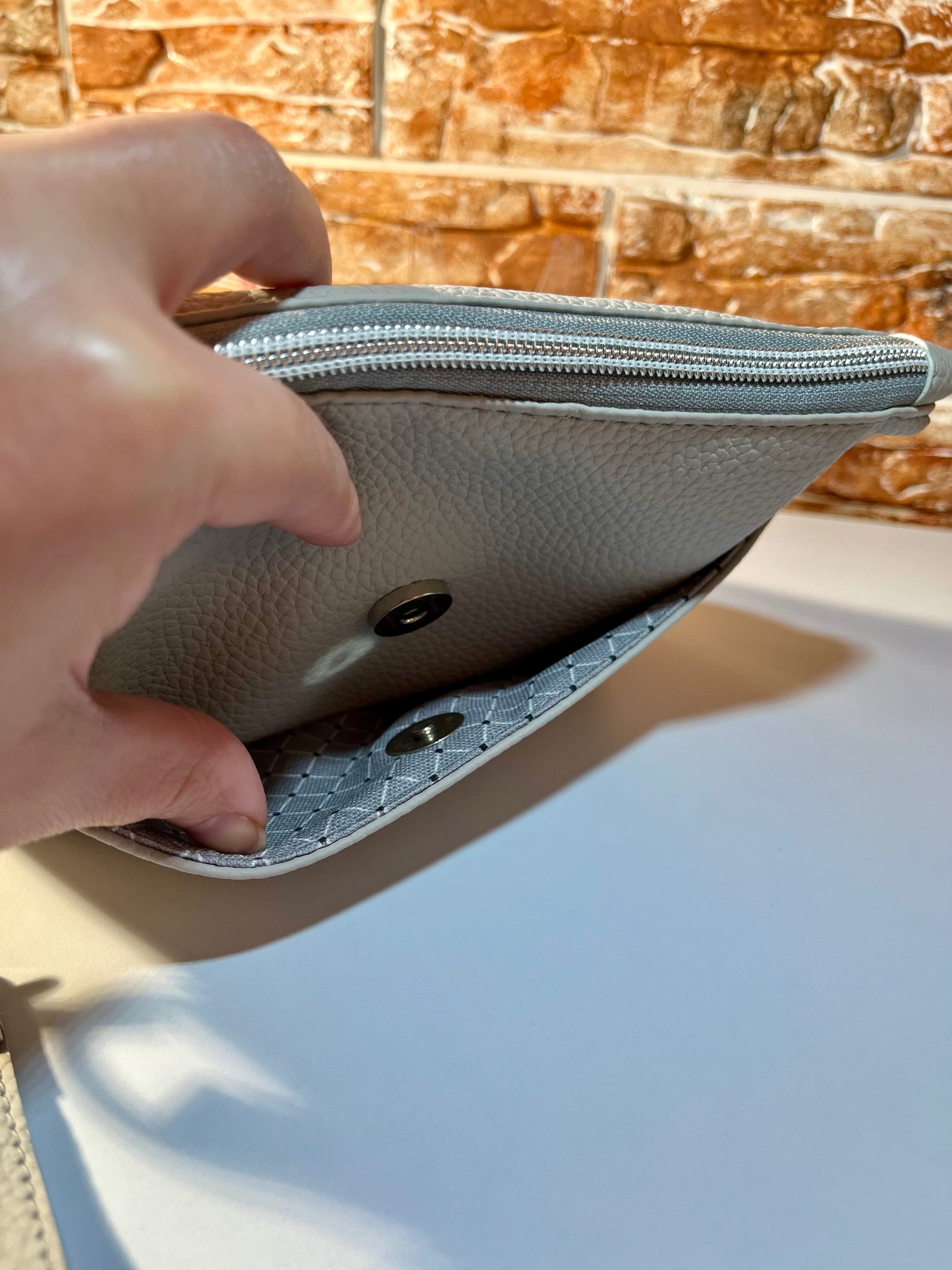Features: 1-inside Slip Pocket / 1-large outer pocket with a magnetic snap.